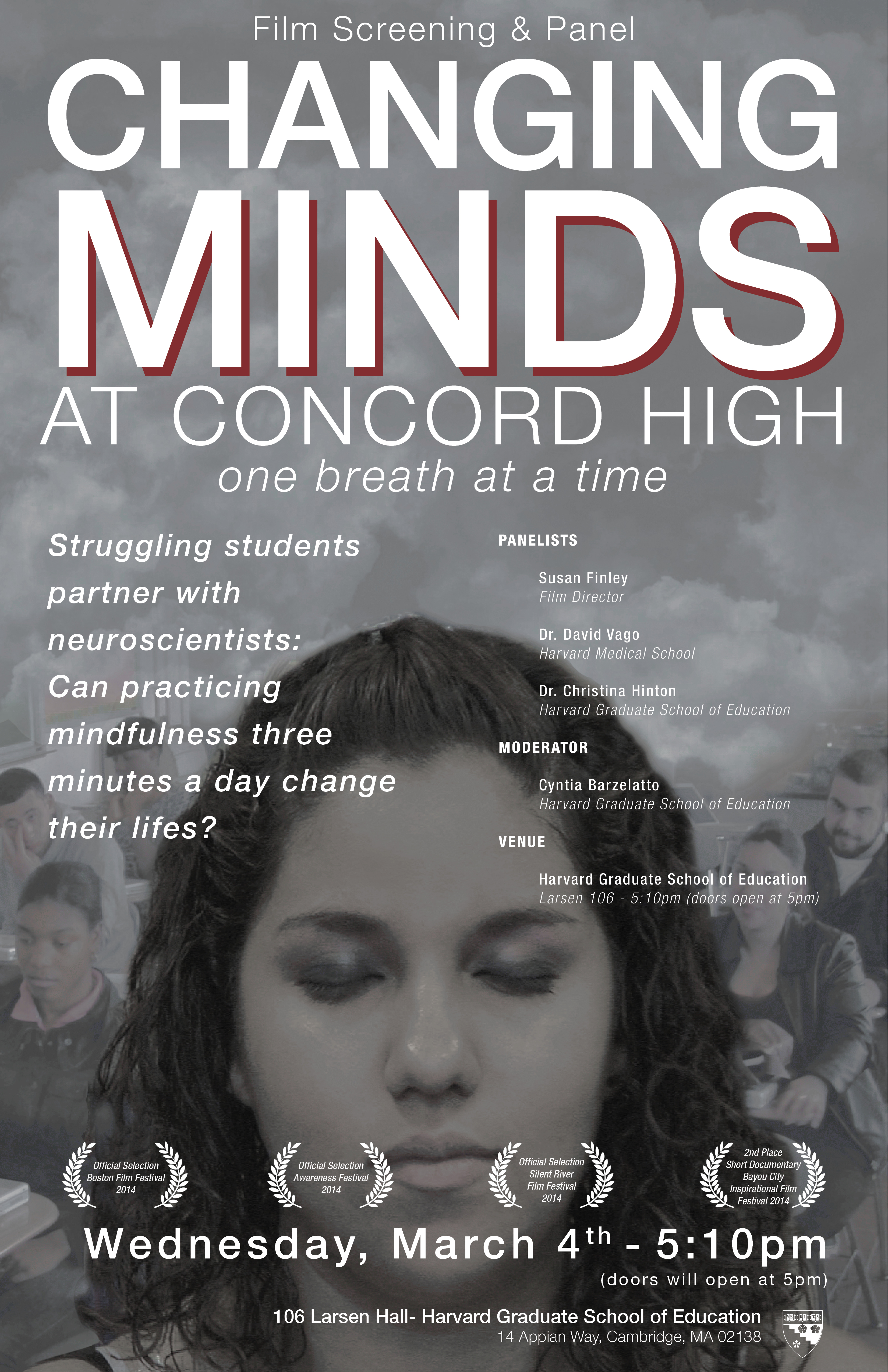“ATTENTION MAYOR BLOOMBERG: WATCH “CHANGING MINDS AT CONCORD HIGH SCHOOL” MINDFULNESS ROCKS! …and the Academy Award for Best Documentary Goes to a Feel-Great Film That Demonstrates Life Changes at Concord High School After students learn Mindfulness techniques.”